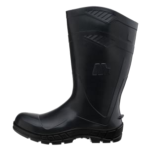 Bota ocupacional de cano longo tipo D, classificação II, impermeável, confeccionada em material polimérico (PVC), sem forração interna, na cor preta.