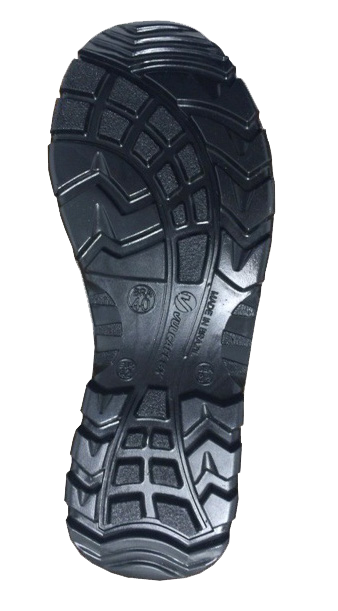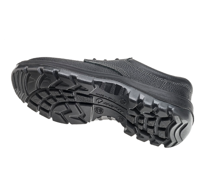 Sapato de segurança com biqueira de aço, colarinho acolchoado, confeccionado em couro, fechamento em cadarço, forração interna e solado bidensidade.